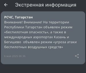 МЧС предупреждает об угрозе атаки беспилотных летательных аппаратов.