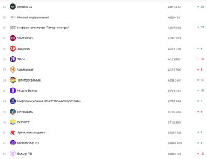 Информагентство «Татар-информ» заняло 51-ю позицию в федеральном рейтинге СМИ по итогам января, составленном исследовательской компанией Mediascope.