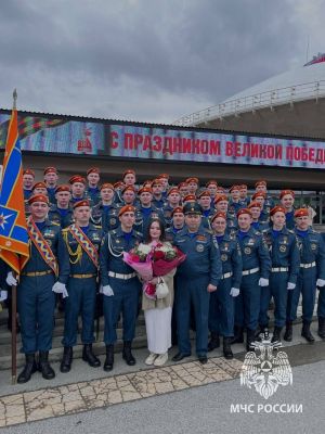 На параде Победы в Казани произошло трогательное событие: сотрудник МЧС России Эмиль Герасимов решился на важный шаг и предложил руку и сердце своей девушке Наталье.