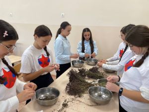 27 сентября добровольцы из Уруссинской гимназии провели совместную акцию, заключавшуюся в измельчении душицы для чая, предназначенного для передачи участникам Специальной военной операции.