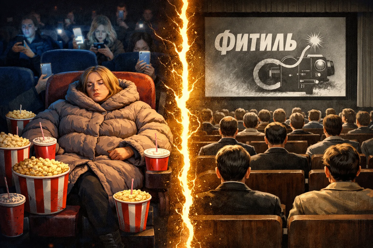 Но не тут-то было! Сначала нас полчаса «радовали» рекламой. Да не простой, а очень громкой, мелькающей, призывающей купить все и сразу, «забронировать» места в душе на новые просмотры кинофильмов. За это время моя нервная система, воспитанная на вежливом трехминутном киножурнале «Фитиль», дала сначала отбой, потом тревогу, а после и вовсе ушла в глухой отказ. Наконец, фильм стартовал. Но какая-то странная движуха началась в зале ровно в середине сеанса. Зрители, шурша пакетами и хрустя начосом, потянулись кто куда. Выходят из зала в туалет, заходят из туалета… Оглянешься - то тут, то там в темноте засветится экран телефона (ай-яй-яй!), то компания справа оживленно обсуждает качество попкорна, то слева ребенок требует добавки колы. Интересно, хоть кто-нибудь вникает в то, что происходит на экране? Впрочем, а зачем? Это же «развлекаловка». Жуй, глотай, листай ленту, переговаривайся - полная релаксация. Кресла-то широкие, удобные, прямо располагают если не к просмотру, то к хорошему сну.