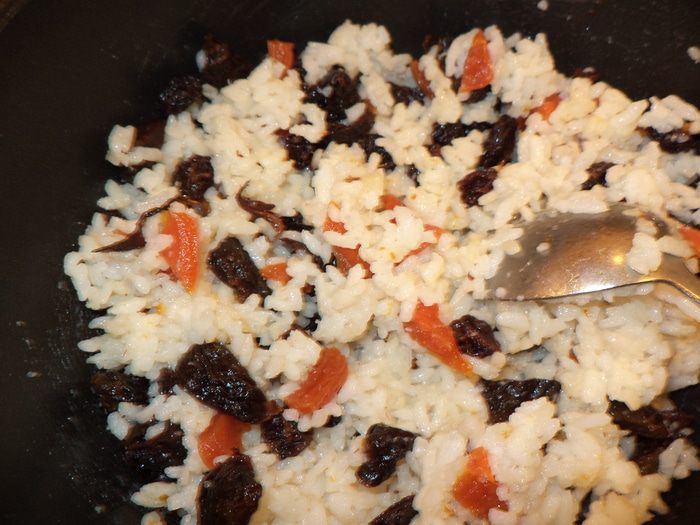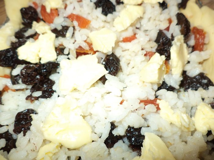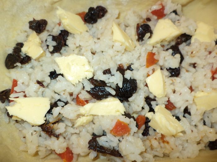 Это башкирское (татарское) национальное блюдо. Просто сказочно вкусный пирог. Оговорюсь сразу, он конечно отличается от оригинального, я опишу все отличия, чтобы вы могли при желании сделать другой вариант. Слои в оригинале: рис, кызыл эремсек, яйцо,сухофрукты и просто неприлично большие куски сливочного масла,поэтому как говорят кушать его нужно только теплым (с таким то количеством сливочного масла), мне больше понравилось смешивать рис с сухофруктами и делать в два слоя и конечно же я использую намного меньше масла. И еще скажу про кызыл эремсек - это красный творог, такой готовят только здесь! В татарском варианте он называется корт, в Башкирии корот это очень вкусный кисломолочный продукт, похожий на ряженку, а кызыл эремсек это уваренный,оттопленный творог со слегка сладковатым вкусом - ну очень вкусный! Я такой творог обязательно вожу на гостинец и он всегда производит впечатление! Я подумала зачем выставлять рецепт в котором присутствуют "заморские " продукты? Ну кто то пишет что можно использовать и простой творог,или предлагают сделать самим, написав в рецепте, "слизанные" строчки из интернета,но я решила испробовать сама приготовить кызыл эремсек ,не всякая хозяйка за это возьмется ,но я рискнула и мой риск был оправдан! У меня получился настоящий эремсек из продуктов, которые вы сможете найти в любом магазине, что бы тоже прикоснуться к чудесам Башкирской кулинарии,но об этом чуть позже, а пока знакомьтесь - губадия сладкая.