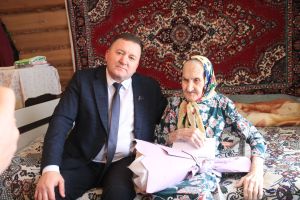 Ютазы районы башлыгы урынбасары Закуан Ильясов Әбсәләм авылында яшәүче тыл эшчәне Наҗия Галимованы котлады
