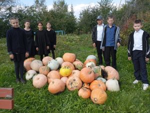 В Дым-Тамакской школе прошел урок технологии на тыквенных грядках