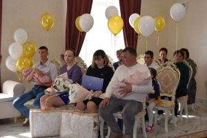 В обновленном зале торжеств отдела загс состоялось мероприятие, посвященное вручению свидетельства о рождении и удостоверения многодетной семьи двум семейным парам района.