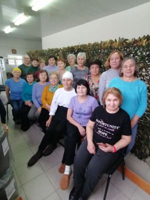 Урыссу бистәсенең «Энергия» стадионы биналарының берсендә «Йөрәк чакыруы буенча» дип исемләнгән волонтерлар төркеме эшли.